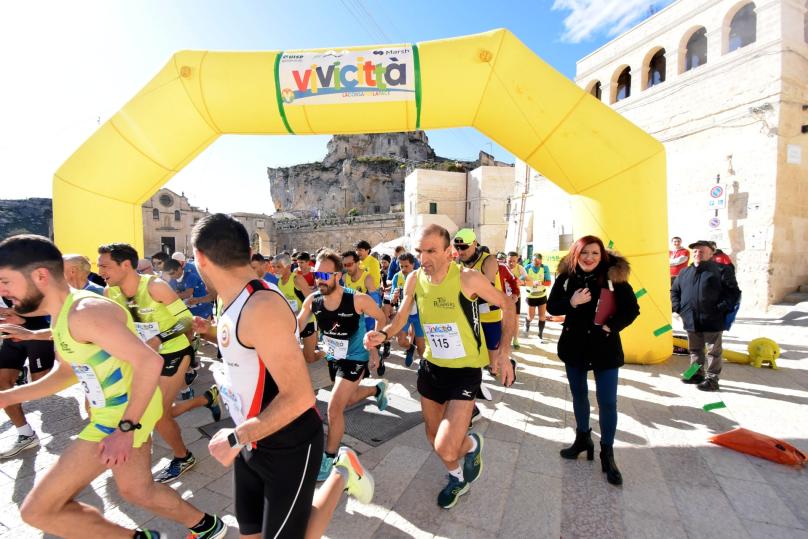 MATERA - Dopo due anni di fermo obbligatorio per il covid 2019, è ripartito oggi alle 9.30 da Piazza San Pietro Caveoso nel cuore dei Sassi di Matera, il Vivicittà 2022. Hanno partecipato 1200, tra agonisti e coloro che hanno preso parte alla passeggiata ludico-motoria "3 km". Partenza alle 11, per un percorso di 10 km per gli agonisti, dove il protagonista assoluto per la prima volta è stato lo scenario dei vecchi rioni di Matera. Dai sassi al piano, passando dalla centralissima piazza Vittorio Veneto e percorrendo il centro storico per tornare all'arrivo in Piazza San Pietro Caveoso. Il vincitore maschile è stato Lamin Cessay, la vincitrice Sara Moretti.