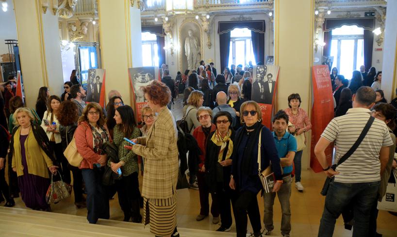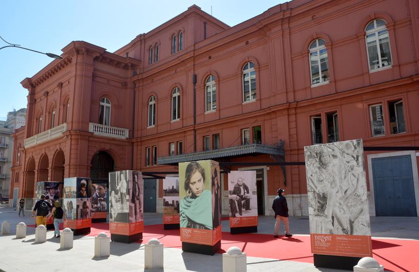 Davanti al teatro Petruzzelli, una esposizione di opere che fanno da cornice alla manifestazione che si chiuderà tra una settimana. (Maria Grazia Rongo)