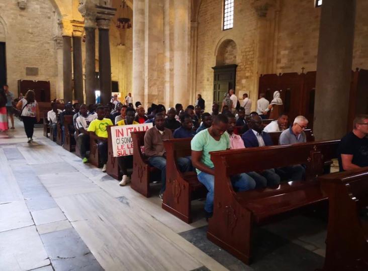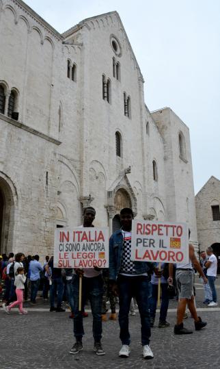 L’arcivescovo di Bari-Bitonto, monsignor Francesco Cacucci, ha incontrato la delegazione di braccianti in presidio di protesta nella Basilica di San Nicola, assicurando che parlerà con gli altri vescovi pugliesi e con il presidente della Regione Puglia, Michele Emiliano, per farsi portavoce e interprete delle richieste dei braccianti. I braccianti denunciano «condizioni disumane» di lavoro e di vita nei campi del foggiano. «Volentieri mi faccio interprete di questi che sono l’espressione del riconoscimento dei diritti della dignità umana» ha detto monsignor Cacucci parlando ai braccianti, assicurando che «da parte nostra c'è un atteggiamento di difesa senza se e senza ma della dignità umana».