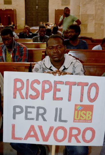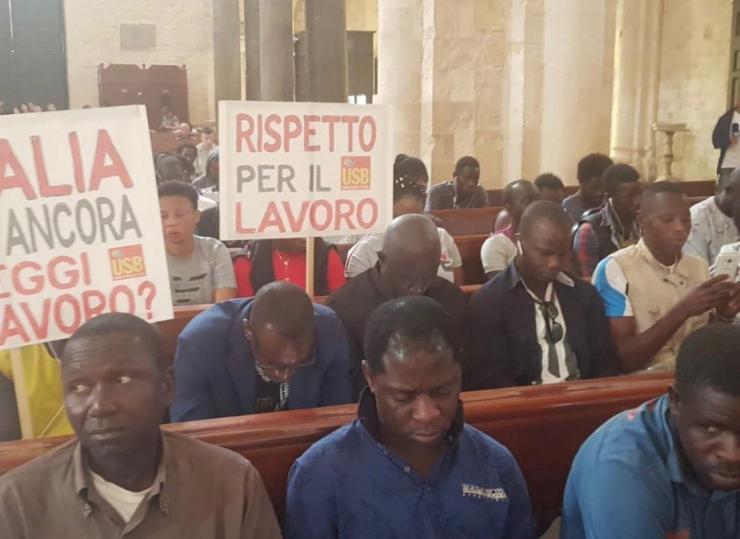 «Siamo entrati in questo istante nella Basilica San Nicola di Bari con un gruppo di braccianti sfruttati e costretti a vivere in condizioni disumane nelle campagne di Foggia e Borgo Mezzanone con paga da fame. Papa Francesco dice che il lavoro conferisce dignità all'uomo, però quello dei braccianti è un lavoro privo di dignità e diritti. Chiediamo un confronto con l'arcivescovo Mons. Francesco Cacucci perché la Regione Puglia e il governo latitano in totale indifferenza»