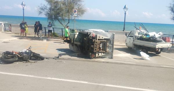 Brutto incidente questa mattina a Palese (Ba) sul lungomare Lorusso: un 17enne del luogo, alla guida di un motociclo, si è scontrato con un mezzo a tre ruote dell'Amiu, l'azienda che si occupa dell'igiene urbana e della raccolta dei rifiuti.