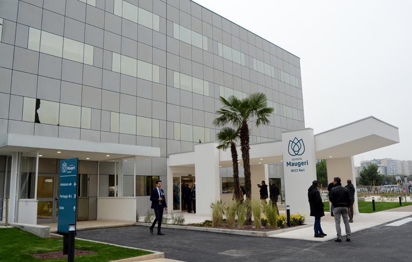 Palme e arbusti di salvia, rosmarino e lavanda contornati da ghiaietto bianco delle cave pugliesi: c'è anche del verde, mediterraneo e pugliese, nei 35mila metri quadri (15mila esterni) del nuovissimo Istituto Maugeri IRCCS Bari. Il nuovo ospedale, inaugurato il 5 dicembre, dal governatore Michele Emiliano e dal sindaco Antonio Decaro, è il frutto di una lunga e accurata riqualificazione dell’area e dell’immobile, Villa Patrizia, 7 piani (di cui tre nel sottosuolo), per 60mila metri cubi complessivi, costruito nel 1997 ma mai utilizzato. L’immobile è stato ceduto a giugno 2018 dal gruppo Matarrese al fondo Iaso, gestore del patrimonio immobiliare di ICS Maugeri Spa Società Benefit, che ci sposterà, entro l’anno, il suo storico IRCCS di Cassano delle Murge.