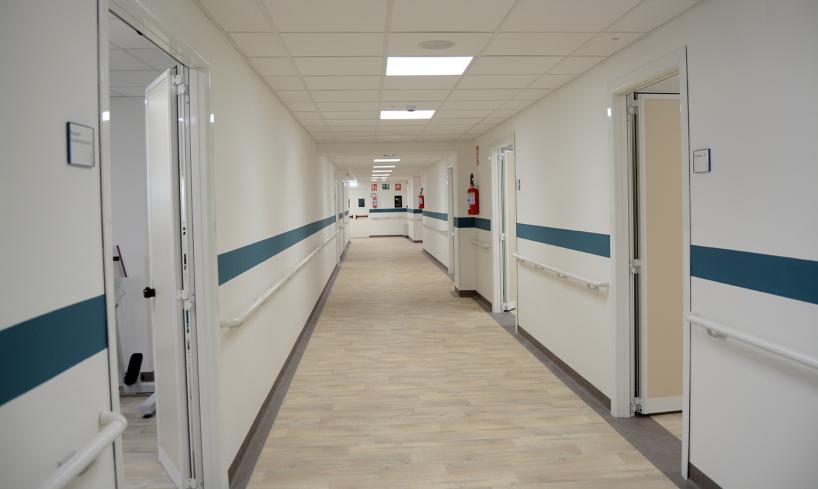 L’edificio, destinato a pazienti di Medicina riabilitativa, è stato ripensato: per esempio il piano terra, progettato a uffici, è stato riqualificato a degenza, ciò ha significato cambiare gli spazi, le finiture, i servizi igienici, progettando soluzioni di arredo mirate all’umanizzazione degli spazi.