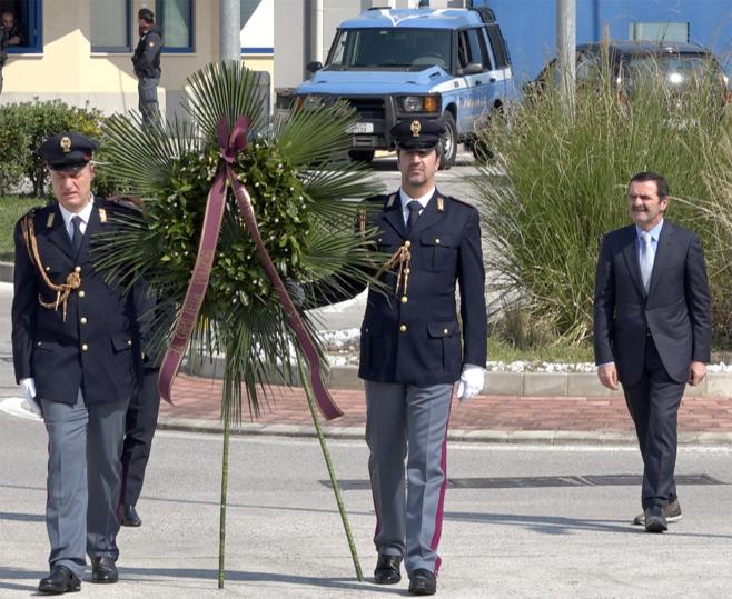 Questa mattina alle 10.30, il Sig. Questore di Bari - Dirigente Generale di Pubblica Sicurezza dr. Giuseppe Bisogno - ed il Prefetto di Bari - dott.ssa Antonia Bellomo - hanno deposto una corona, in memoria dei caduti, presso il Centro Polifunzionale della Polizia di Stato, in occasione del 168° Anniversario della fondazione della Polizia.