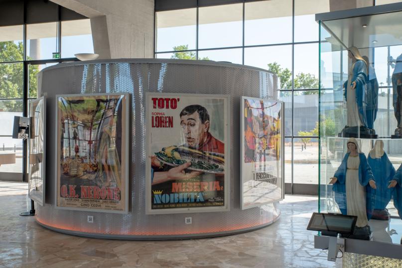 L’allestimento della parte museale, al piano terra, che sarà aperta a visite guidate soprattutto destinate alle scuole, è stata curata dalla factory Makinarium di Leonardo Cruciano, e ospita alcune delle opere più imponenti dei film di Matteo Garrone, tra cui parte della scenografia «La grotta della Pipistrella» e «Il drago marino» del film del 2015 «Tale of Tales». C'è poi una sala con una piccola zona di proiezione oscurabile, manifesti e locandine dei film della Mediateca regionale pugliese, teche e tavoli espositivi di scenografie e produzioni internazionali girate in Puglia, e un’altra sala che ospita il «Polo del digitale» con desk e postazioni lavoro per post-produzione, gaming, effetti speciali e animazione.