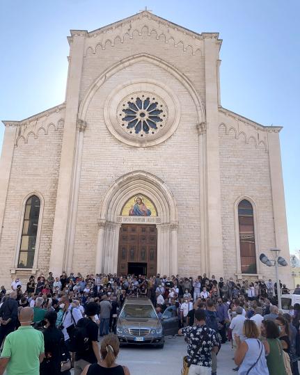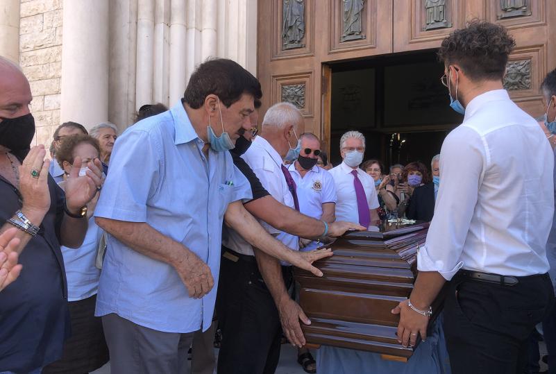 A fine celebrazione, nel caldo pomeriggio, un lungo applauso saluta il feretro che lentamente si allontana.