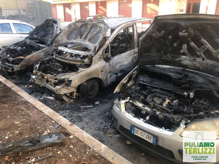 Incendiate tre auto nella notte a Terlizzi (Ba). A darne notizia è Puliamo Terlizzi, i cui volontari sono intervenuti questa notte insieme alla polizia locale e ai vigili del fuoco intorno alle 3, in via Lucca, per il rogo, che ha interessato tre vetture. Nessun ferito, ma i residenti della zona sono rimasti molto turbati, svegliati anche dall'odore acre. Le cause dell'incendio sono ancora da accertare.
