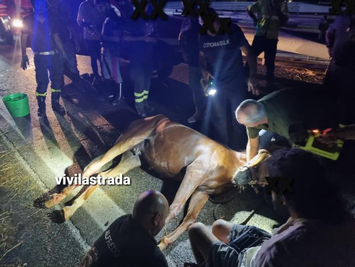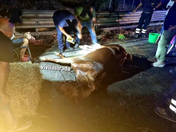 Bari, scoppia la gomma del carrello di trasporto: cavallo in fin di vita sulla tangenziale
