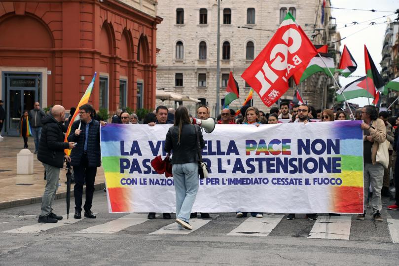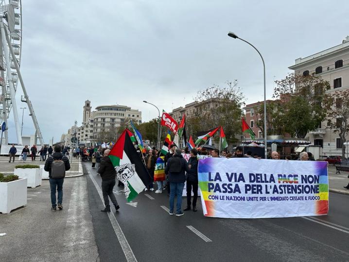 «La politica deve avere il coraggio di chiedere la pace. Per questo chiederemo al consiglio comunale di mettere all’ordine del giorno la richiesta per il cessate il fuoco, al di là dell’appartenenza politica, senza se e senza ma». A dirlo, nel suo intervento durante il corteo regionale per la pace in Palestina di Bari, è l’assessore comunale al Welfare Francesca Bottalico. «La pace ha bisogno della faccia di ognuno di noi - ha aggiunto - ha bisogno di non nascondersi e non astenersi ma di lottare per gli uomini e le donne, per il diritto alla vita. La guerra non è lontana, tutti abbiamo il dovere di essere costruttori di pace, insieme». "Chiediamo che l’Italia, che ha una grande tradizione di amicizia con il mondo arabo, prenda una posizione chiara per chiedere il cessate il fuoco immediato e per condannare la rappresaglia collettiva sulla popolazione civile iniziata dal governo Netanyahu», ha detto a margine della manifestazione Nunzio Nardulli, portavoce del comitato per la pace in Palestina di Bari. «L'Italia dovrebbe farsi promotore dell’avvio di una conferenza di pace per la cessazione del massacro del popolo palestinese insieme alla comunità internazionale. Oggi in piazza ci sono migliaia di persone che chiedono questo», ha concluso.