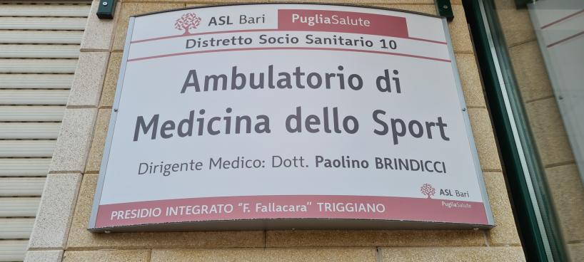 TRIGGIANO - A Triggiano, in provincia di Bari, è attivo il nuovo servizio dell’Asl di Medicina dello sport. L'ambulatorio è ospitato nel presidio integrato ospedale-territorio Fallacara, nei locali situati nel padiglione della palazzina ex infettivi, al piano seminterrato. Il servizio di Medicina dello sport, oltre all’attività di certificazione sportiva, assicura attività e prestazioni ambulatoriali rivolte al mantenimento e al miglioramento dello stato di salute, alla prevenzione delle malattie cardiovascolari, alla diagnosi e alla cura di patologie legate all’attività sportiva, nonché alla valutazione dell’efficienza fisica di soggetti sani e con patologie croniche per la prescrizione dell’esercizio fisico come terapia finalizzata a rallentare il decorso della malattia stessa e prevenirne le complicanze.