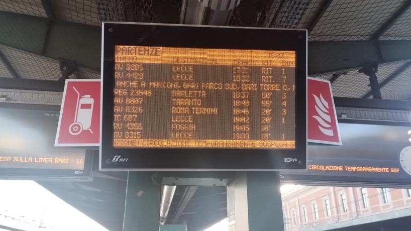 Il treno FR 9805 Torino Porta Nuova (9:10) - Lecce (18:50) è fermo dalle ore 18:40 a Bari Centrale.