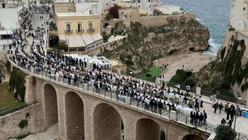 BARI - Il ponte di Lama Monachile a Polignano ha fatto da palcoscenico a un pranzo da record: 380 operatori turistici provenienti da tutto il mondo si sono seduti a tavola per degustare le bontà culinarie pugliesi.