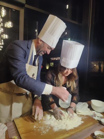 GIOIA DEL COLLE - Il sindaco di Bari Vito Leccese è stato il protagonista di un divertente showcooking a Gioia Del Colle, organizzato nel corso della presentazione di "Una questione di soldi", undicesimo libro della saga di Lolita Lobosco scritto da Gabriella Genisi. Il primo cittadino e la scrittrice hanno impastato davanti agli avventori la nota focaccia barese. Vito Leccese del resto ha la passione per la cucina, spesso organizza cene in casa con menù originali.