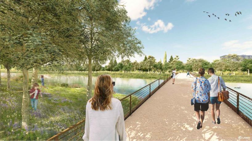Ci saranno quindi tre torrette belvedere (e birdwatching) e una passerella in forma di ponte ciclo-pedonale, localizzata in attraversamento del canale Valenzano, quale collegamento tra via Peucetia e l’argine alla destra idraulica corrispondente nell’area d’intervento ove sarà realizzato il bosco detto “Onda verde”.