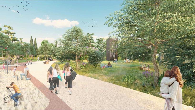 Sul lato destro, invece, le aree ludiche assumeranno conformazioni più libere, definite dalla rete dei percorsi presenti nel parco. Non mancherà un'area intergenerazionale, in cui vi sono attrezzature per la ginnastica dolce e giochi in cui persone di varia età possano giocare insieme o contemporaneamente in armonia.