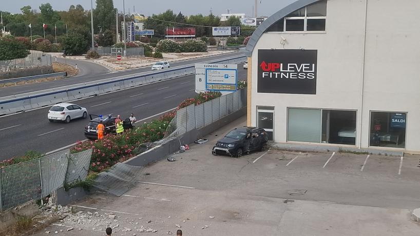 Bari, auto sfonda la recinzione della statale e finisce in un parcheggio: una donna in ospedale VIDEO
