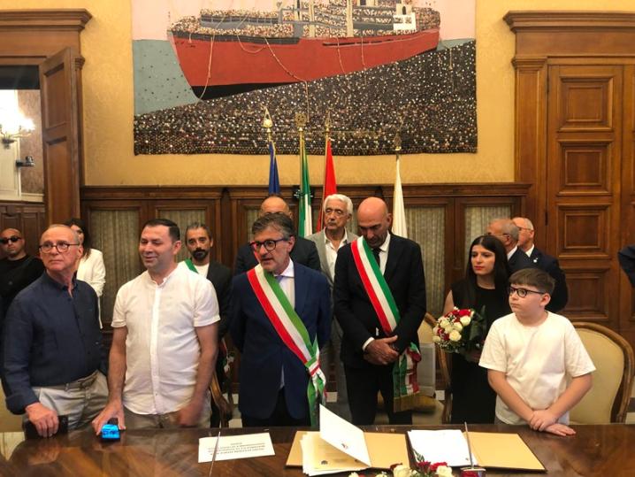 “Questo conferimento avviene nell’anniversario di uno degli eventi che hanno segnato la storia della nostra città - ha dichiarato Vito Leccese -: Astrit e Daniela si sono trasferiti a Bari alcuni anni dopo l’arrivo della Vlora e da oggi diventano cittadini italiani a tutti gli effetti, coronando una sogno fatto di lavoro e sacrifici, senza però dimenticare le loro origini albanesi. A Bari nessuno è straniero, lo diciamo spesso, e proprio quell’8 agosto del 1991 il popolo barese ebbe modo di dimostrarlo con atti di solidarietà e gesti spontanei di accoglienza, testimoniando concretamente i valori fondanti della nostra identità, nonostante le posizioni del governo centrale, che affrontò l’evento con un’operazione di polizia. A Daniela e Astrit ci stringiamo con affetto, accogliendoli ufficialmente nella nostra comunità, proprio oggi che festeggiano i 22 anni di matrimonio”.