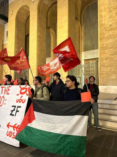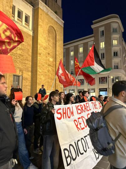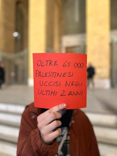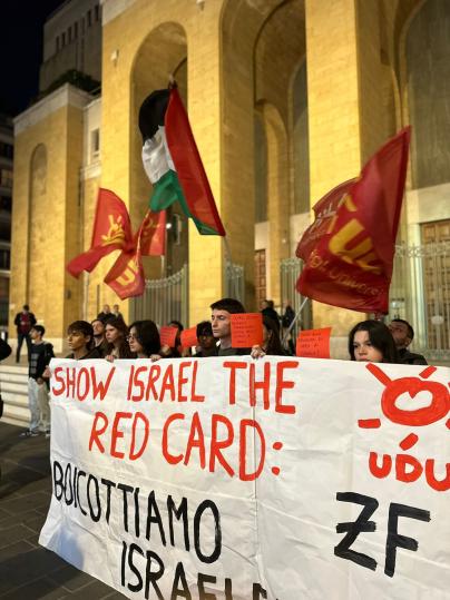 Studenti in piazza in occasione della partita Italia-Israele per denunciare la tolleranza sportiva verso lo Stato sionista