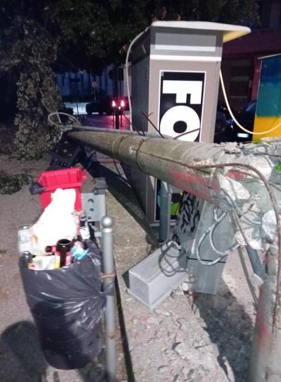 A breve distanza, si è registrato anche il cedimento di un palo dell’illuminazione pubblica. Fortunatamente non ci sono stati feriti, poiché al momento dell’incidente non erano presenti persone nelle vicinanze.