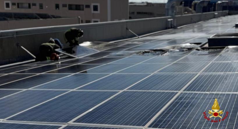 Modugno, incendio sul tetto di un capannone: bruciati pannelli fotovoltaici