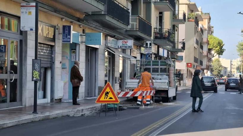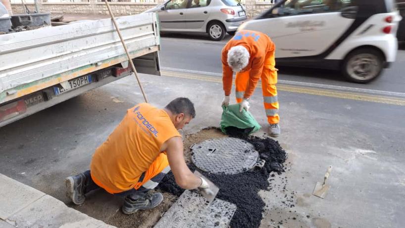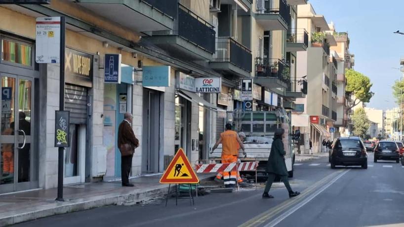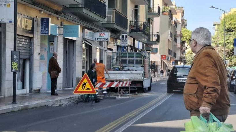 Adesso, sui marciapiedi di via re David è stato versato il veleno in polvere, soprattutto in prossimità degli ingressi delle attività. E l'asfalto? Ripristinato, con il tombino lasciato scoperto.