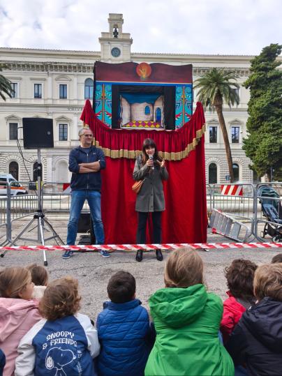 “Anche questa domenica più di 200 bambini insieme ai loro genitori hanno occupato la piazza pacificamente. L’obiettivo del programma è quello di stare insieme nello spazio pubblico e e avvicinare i più piccoli al teatro con spettacoli gratuiti curati dalle compagnie di teatro ragazzi della città, che ha una grande tradizione”