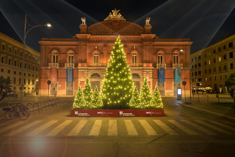 In largo Candida e Ave Maria Stella, invece, Confindustria Bari Bat e Ance Bari Bat hanno curato un allestimento di piante e arbusti illuminati, mentre in piazza del Ferrarese prende forma il suggestivo “Giardino Natalizio” promosso da Arpal e Dirello, arricchito da videomapping e proiezioni a tema sulla facciata dell’ex Mercato del Pesce.