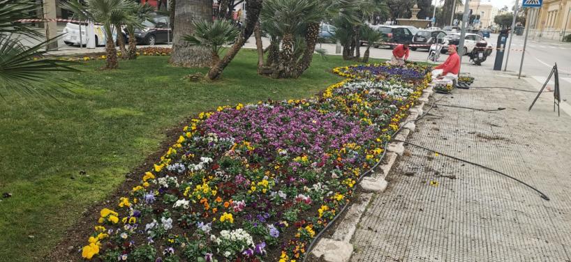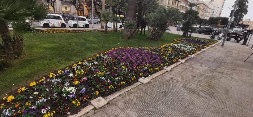 Colori e profumi nuovi davanti al teatro Petruzzelli. La Multiservizi ha rinnovato le aiuole cambiando le essenze floreali già presenti. Al posto delle lantane estive, infatti, sono state piantate circa 3000 viole del pensiero. Basteranno alcuni giorni perchè le piantine si riempiranno e così l'effetto cromatico sarà ancora maggiore.
