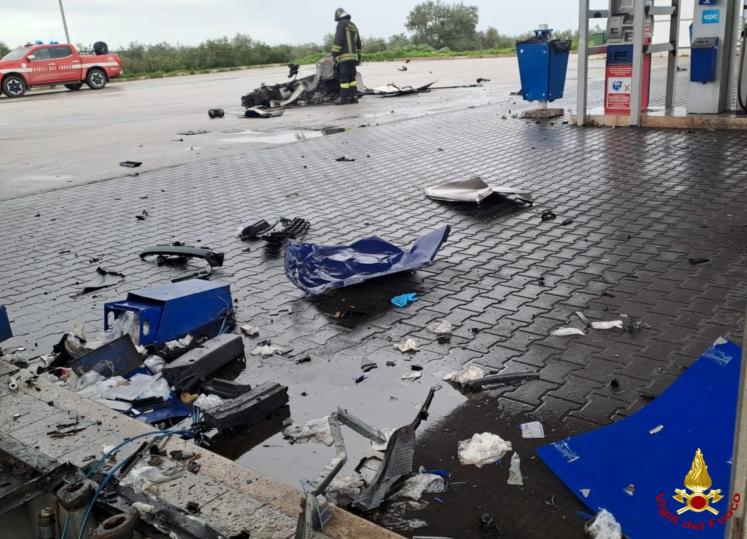 Immediato l’intervento di due squadre dei Vigili del Fuoco, giunte sul posto per il rischio legato alla fuoriuscita di carburante e a un possibile incendio. Gli impianti automatici di chiusura dei serbatoi hanno però funzionato correttamente, evitando conseguenze più gravi. I soccorritori hanno provveduto a domare un principio d’incendio e a mettere in sicurezza l’area dell’impatto.
