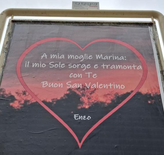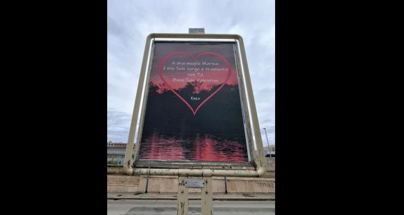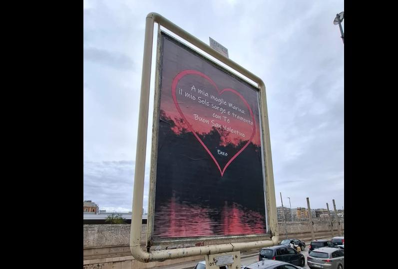 Ma a Bari c'è anche chi opta per un'idea più originale. Su via Capruzzi infatti sono apparsi dei messaggi d'amore per una moglie fortunata, Marina, che nel giorno di San Valentino campeggiano al posto dei classici cartelloni pubblicitari: «Il mio sole sorge e tramonta con te». I messaggi non sarebbero solo su quell'arteria ma anche in altri luoghi della città, come il quartiere Madonnella.