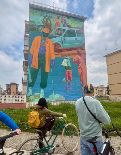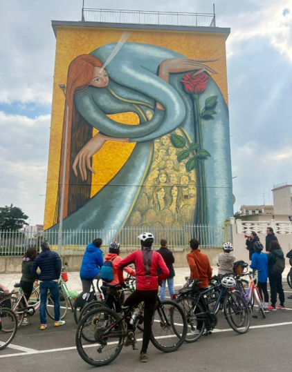 In bici fino al San Paolo per vedere i murales: «Baresi come crocieristi? Il riscatto è un altro»