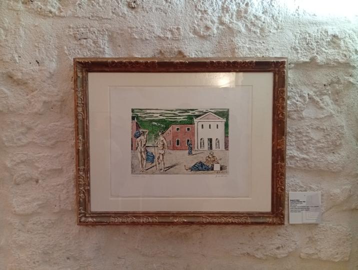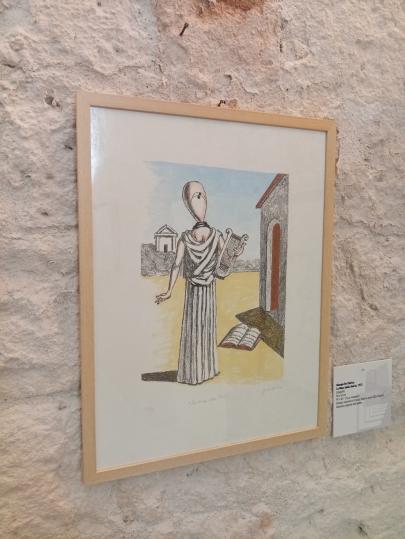 «Per Giorgio De Chirico, tra i maestri più influenti delle avanguardie storiche, il percorso espositivo presente i temi della mitologia, della classicità e dell’architettura metafisica, restituendone l’atmosfera enigmatica e sospesa. Le celebri Piazze d’Italia, per esempio, spazi immaginari dominati da prospettive stranianti, lunghe ombre e silenzi carichi di mistero. Dimensioni interiori, insomma, in cui tutti noi possiamo riconoscerci. La sua pittura, sospesa tra memoria e visione, ha influenzato profondamente l'arte del Novecento, anticipando molte delle intuizioni che saranno sviluppate dal Surrealismo. Nonostante la sua nota idiosincrasia nei confronti della modernità, seppe anticiparne le istanze.».