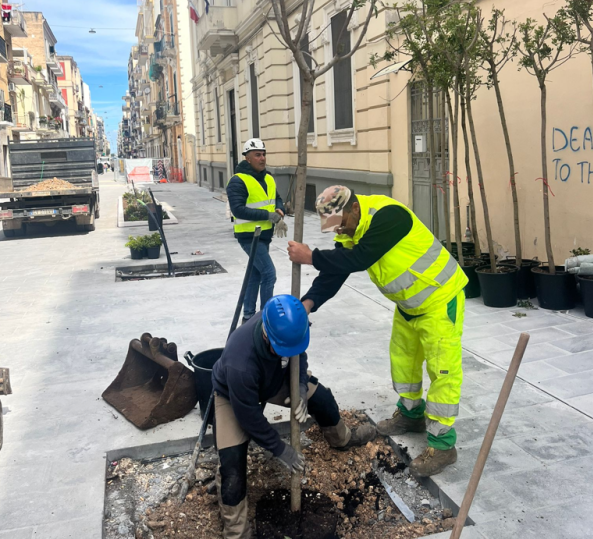 Procedono i lavori di riqualificazione di via Manzoni. Oggi sono state realizzate, nel tratto compreso tra corso Italia e via Crisanzio, le prime piantumazioni di alberi ed essenze vegetali, parte integrante del progetto di rigenerazione urbana che punta a incrementare la qualità ambientale e il comfort dello spazio pubblico.