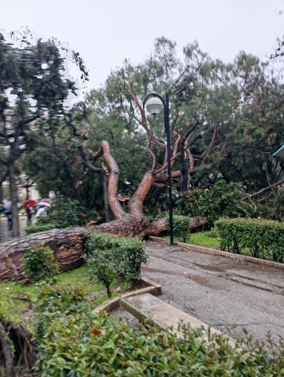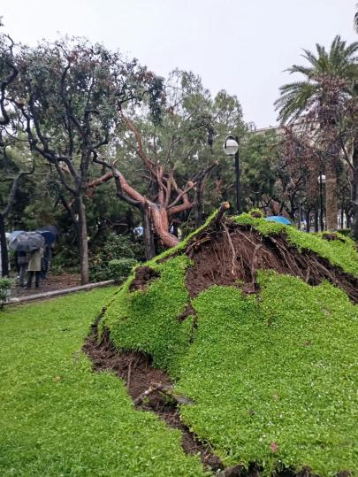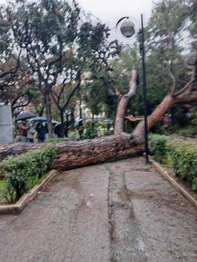 Paura a Bari: un grosso albero è caduto nella centralissima Piazza Umberto. A causa della pioggia incessante e del forte vento che da stamane sta affliggendo tutta la Puglia, le radici dell'albero non hanno retto il peso del tronco e sono fuoriuscite dal verde cittadino. Il grande arbusto è precipitato di traverso, bloccando la strada in una delle grandi aiuole della piazza. Le immagini parlano da sole. Per fortuna non si registrano feriti: sul posto i vigili del fuoco.