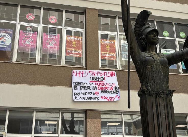 «Un membro della nostra comunità accademica - si legge nel comunicato delle associazioni studentesche - è tenuto lontano da casa con accuse vaghe e strumentali come “diffusione di informazioni malevole online” e “danno alla sicurezza nazionale” che ledono la libertà di ricerca e di pensiero. Portiamo la nostra solidarietà in piazza per chiedere a gran voce che il governo italiano si mobiliti subito per la sua liberazione immediata».