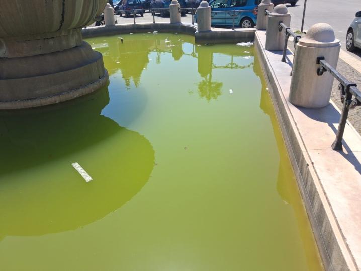A segnalare la situazione sono alcuni cittadini, che hanno diffuso foto e commenti denunciando lo stato di abbandono della vasca. Nelle immagini si nota l’acqua sporca, con cartacce e altri rifiuti in superficie, mentre i bocchettoni della fontana risultano completamente a secco.