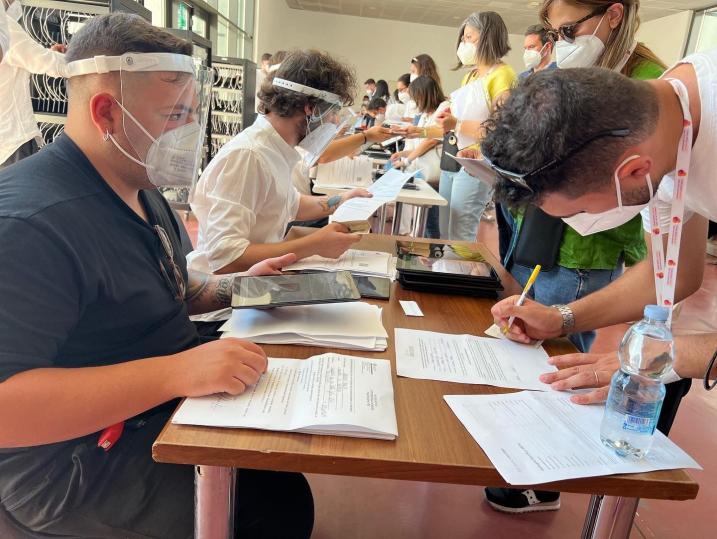 ANDRIA - È cominciato oggi alle 14 il concorso per collaboratori amministrativi a valenza regionale organizzato e condotto dalla Asl Bt. Alla Fiera di Foggia, da oggi al 7 luglio con turni mattutini e pomeridiani, si alterneranno più di 1100 candidati per turno, ai quali sarà chiesto di rispondere correttamente a 40 domande a risposta multipla in 60 minuti. A ogni candidato in fase di ingresso è stato fatto indossare un braccialetto con codice associato a un tablet attraverso il quale rispondere ai quesiti.