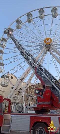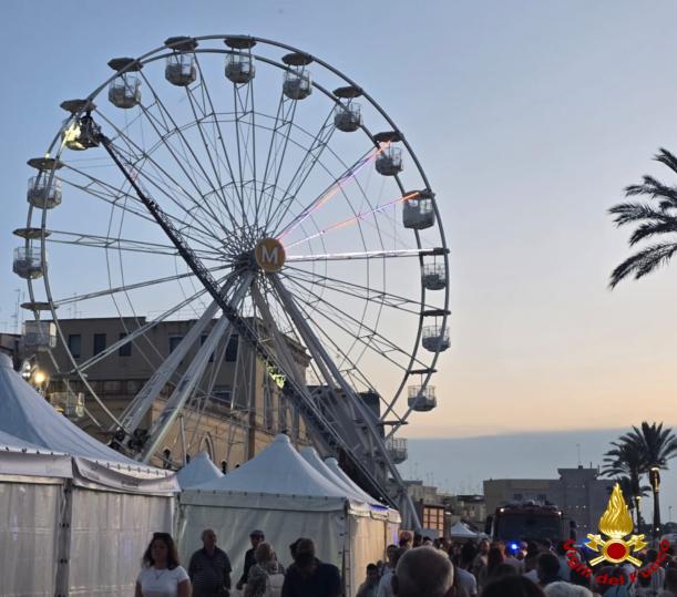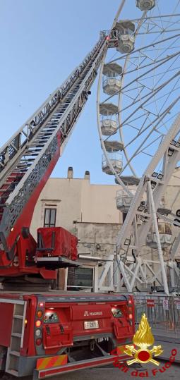Un nonno e la sua nipotina sono rimasti bloccati ieri sera a nove metri di altezza sulla ruota panoramica di Molfetta (Bari) e sono stati soccorsi dai vigili del fuoco che li hanno messi in salvo con un’autoscala.