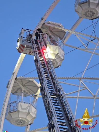 Il proprietario della giostra, sulla banchina San Domenico, ha provato a sbloccare il meccanismo senza riuscirci. È stato così necessario l’intervento di una squadra di vigili del fuoco che hanno raggiunto la cabina ferma a un’altezza di oltre venti metri. Il nonno e la nipotina, visibilmente spaventati, sono stati messi in salvo. E, indossando un caschetto - evidenziano i vigili del fuoco - hanno potuto fare un giro nel cestello dell’autoscala dei pompieri, lunga 40 metri.