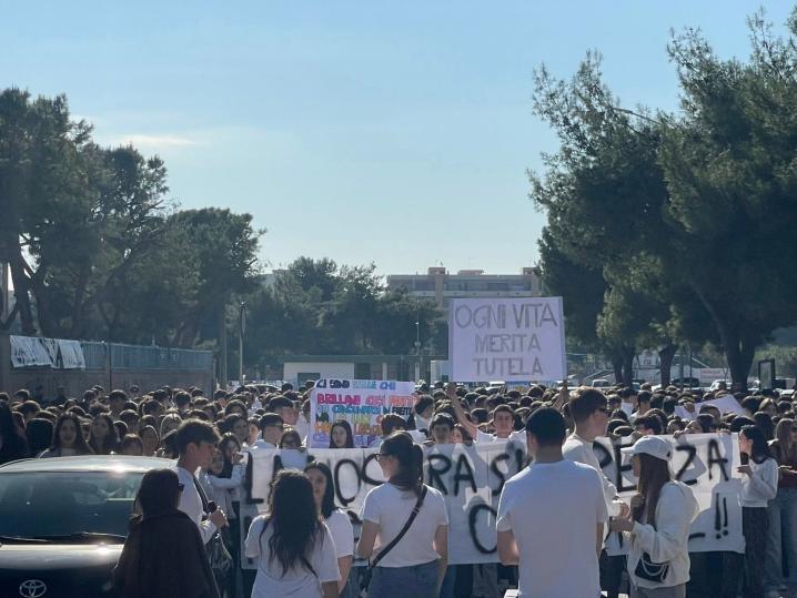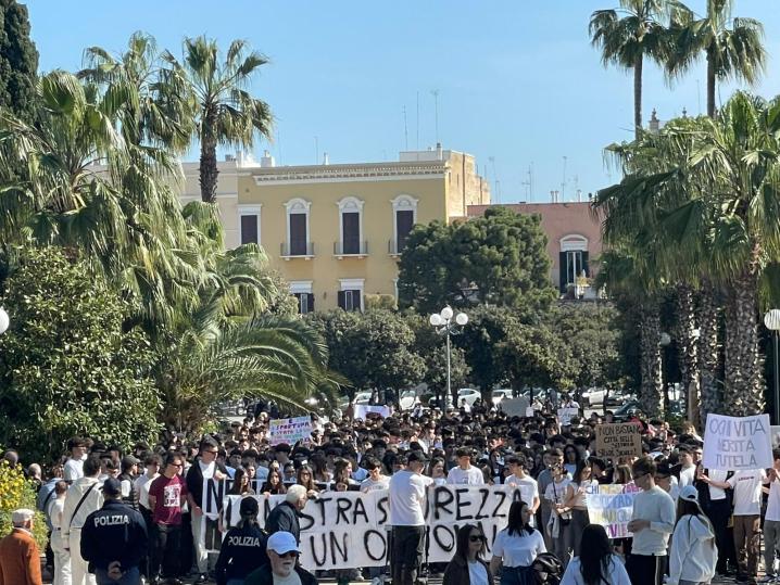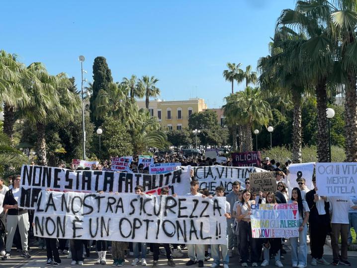 Le note di «Almeno tu nell'universo» di Mia Martini hanno accompagnato il corteo spontaneo degli studenti e delle studentesse dell’istituto Dell’Olio-Cosmai e del liceo Leonardo da Vinci di Bisceglie, un omaggio alla piccola Alicia Amoruso ma soprattutto un modo per chiedere giustizia a gran voce. Alicia è stata travolta e uccisa da un pino sradicato dal vento, lo scorso lunedì 13 aprile, mentre tornava a casa da scuola. Tanta la partecipazione dei ragazzi, che hanno sfilato con magliette bianche e cartelloni dal messaggio chiaro: «Alicia vittima di ciò che non è stato fatto». E, ancora, «Ogni vita merita tutela», «la nostra sicurezza non è un optional».