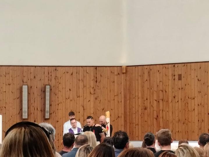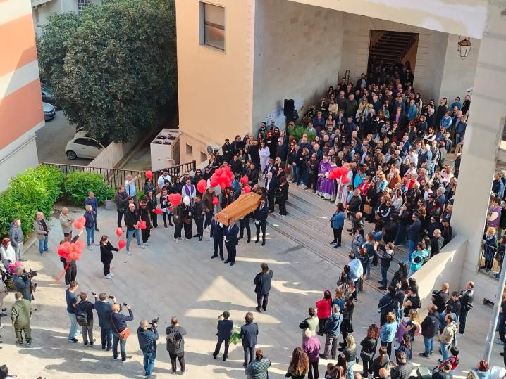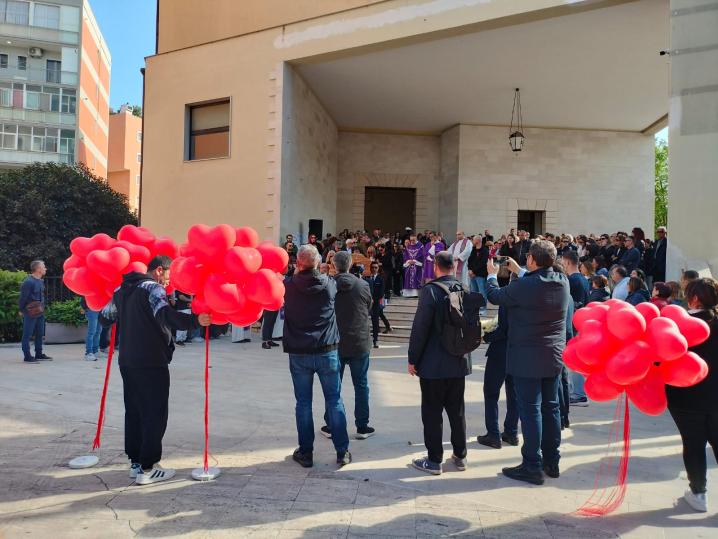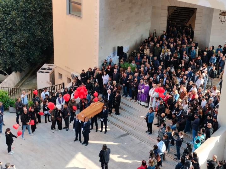 All’uscita del feretro dalla chiesa sono stati fatti volare palloncini rossi a forma di cuore
