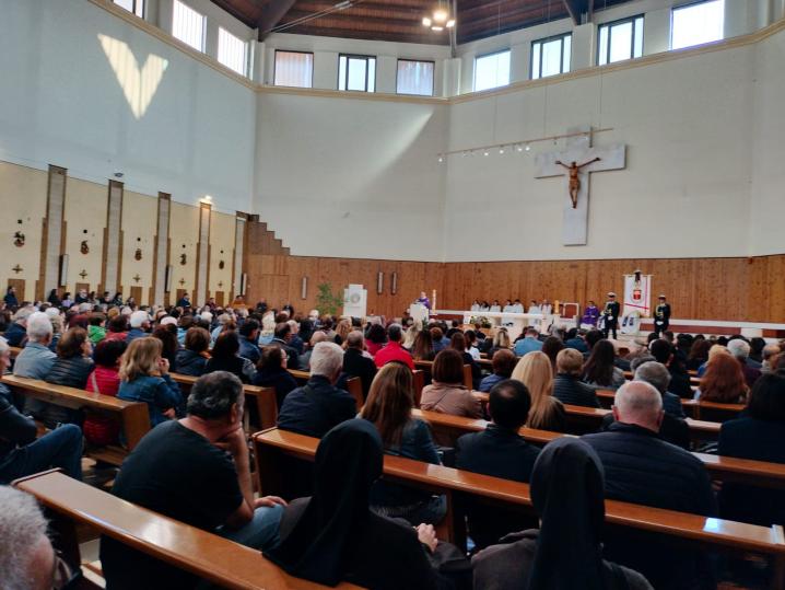 Chiesa gremita e città ferma per i funerali della 54enne uccisa dal marito il 15 aprile. In volo 54 palloncini rossi al termine della cerimonia