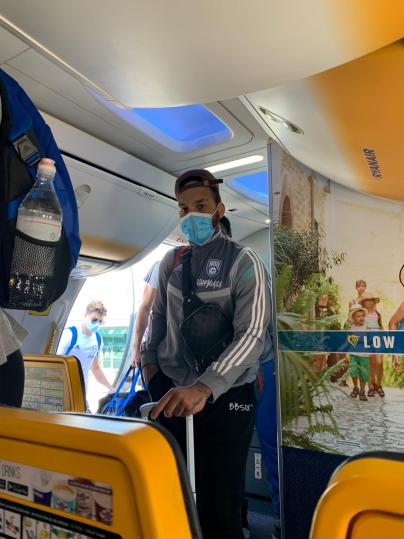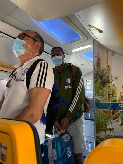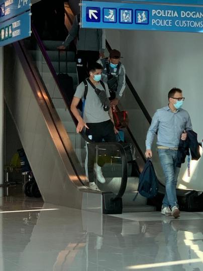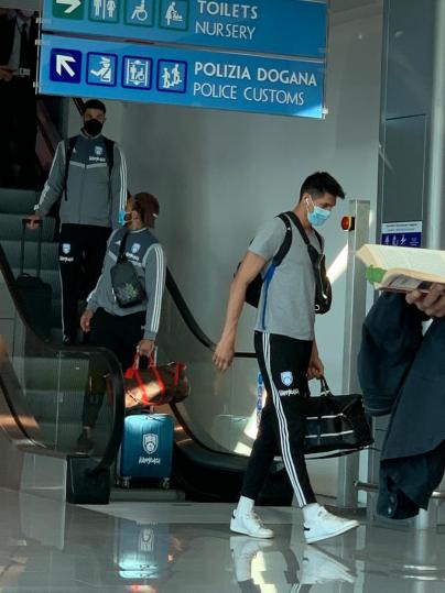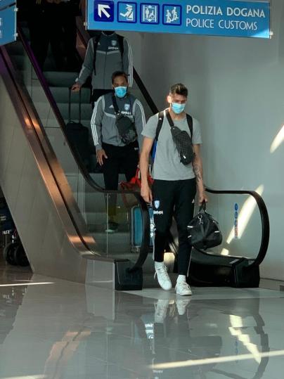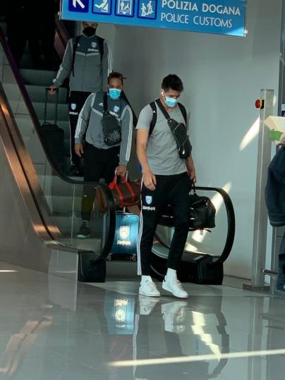 La squadra in aeroporto all'imbarco del Brindisi-Venezia