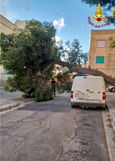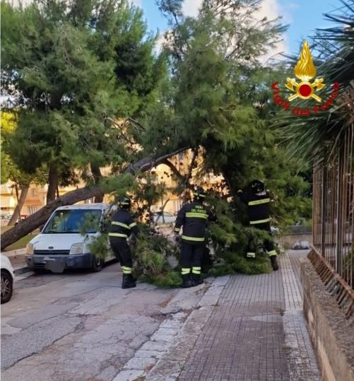 Sul posto sono intervenute due squadre dei Vigili del Fuoco del Comando provinciale di Brindisi, con un’autopompa serbatoio (APS) e un’autogru, per mettere in sicurezza l’area e rimuovere il tronco che ostruiva la carreggiata. Una decina gli interventi nella zona dovuti al forte vento.