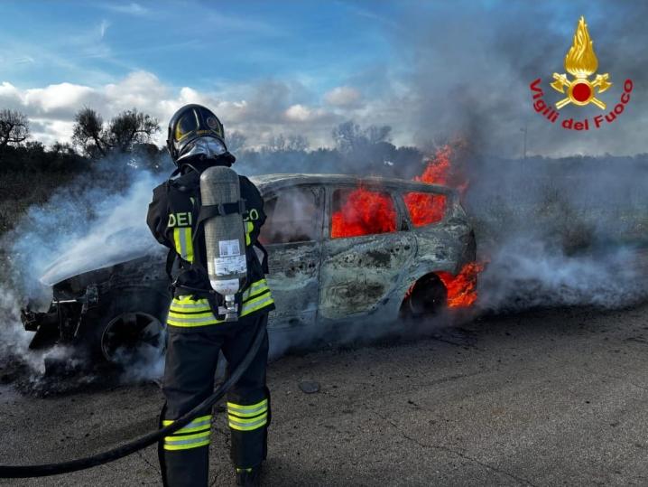 Sul posto è intervenuta una squadra del Comando di Brindisi, per spegnere le fiamme e mettere in sicurezza l'intera area.