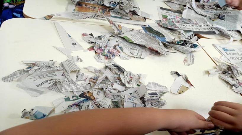 Per creare i nostri cuoricini, abbiamo spezzettato i fogli di giornale in tanti piccoli coriandoli.