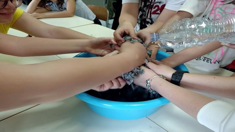 Abbiamo messo i pezzetti di carta in una ciotola con dell’acqua e li abbiamo lasciati per qualche giorno in ammollo, cambiando quotidianamente l’acqua.