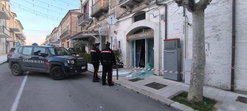 Un violento boato è stato avvertito nella notte a Bovino, piccolo comune dei Monti Dauni in provincia di Foggia, dove ignoti hanno piazzato un ordigno esplosivo, tipo marmotta, all’interno della fessura dello sportello bancomat della filiale della banca Intesa SanPaolo in corso Umberto in pieno centro cittadino.