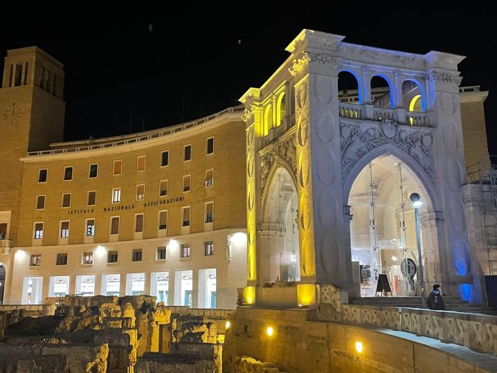 A Lecce invece l'amministrazione comunale ha illuminato stasera e domani il Sedile di Piazza Sant’Oronzo con i colori giallo e blu in segno di solidarietà verso il popolo ucraino.