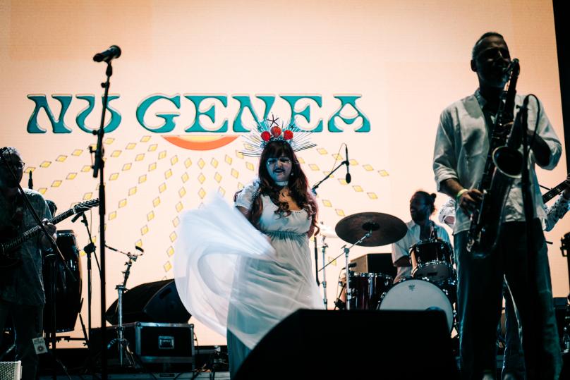 Domenica 14 agosto sono tornati al Locus Festival a Locorotondo (Ba) i Nu Genea, che hanno portato in Puglia il nuovo album “Bar Mediterraneo” e il proprio viaggio lungo le rotte che collegano le musica da ballo di ogni latitudine. Con l’operazione “Nu Genea Invite”, infatti, Napoli incontra il mondo e il duo napoletano è stato affiancato da due nomi scelti appositamente per la line-up del festival pugliese: gli Azymuth con il loro "crazy samba" dal Brasile degli anni '70 e le oscillazioni fra Brooklyn e Bogotà del producer Quantic. Annunciato anche un nuovo appuntamento con i Nu Genea (live band) per martedì 16 agosto.
